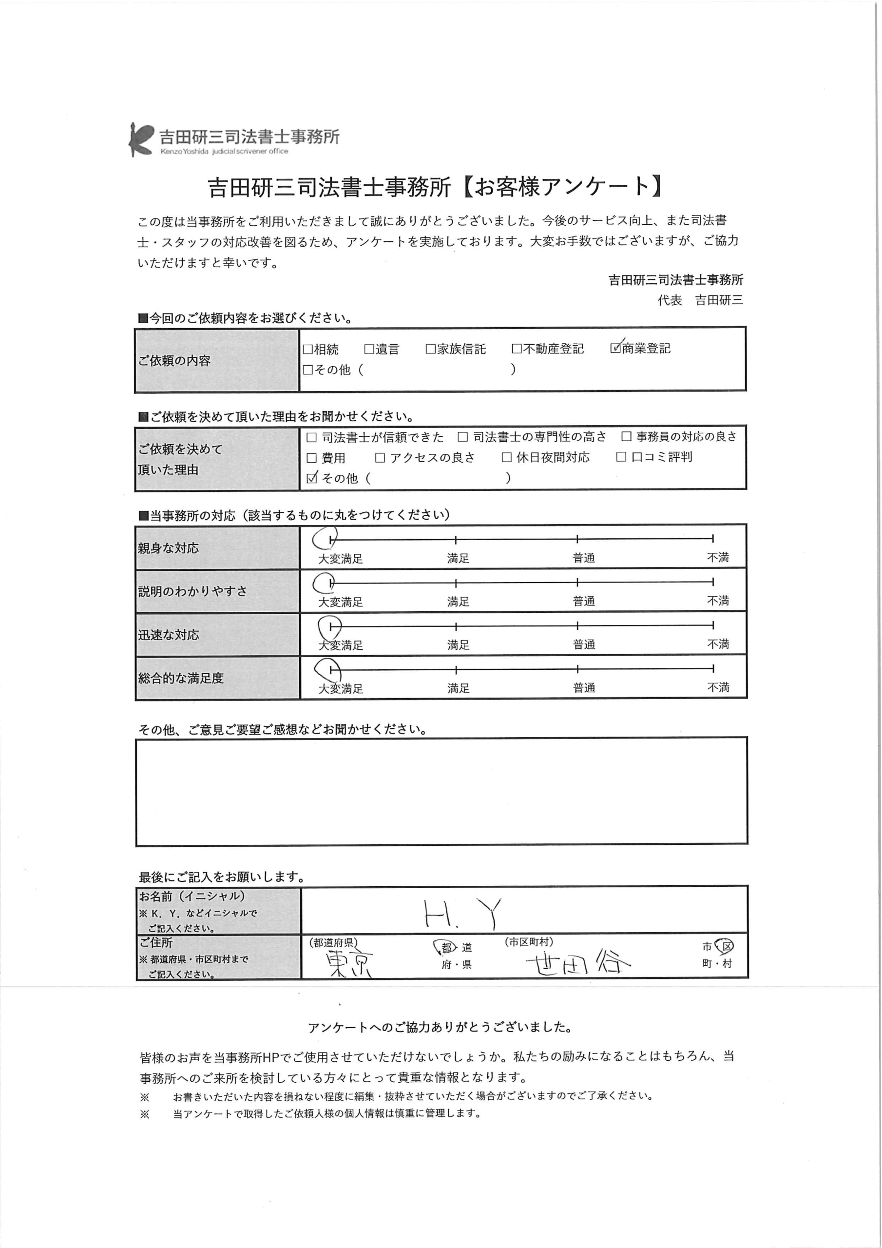 商業登記 世田谷区 H・Y 様
