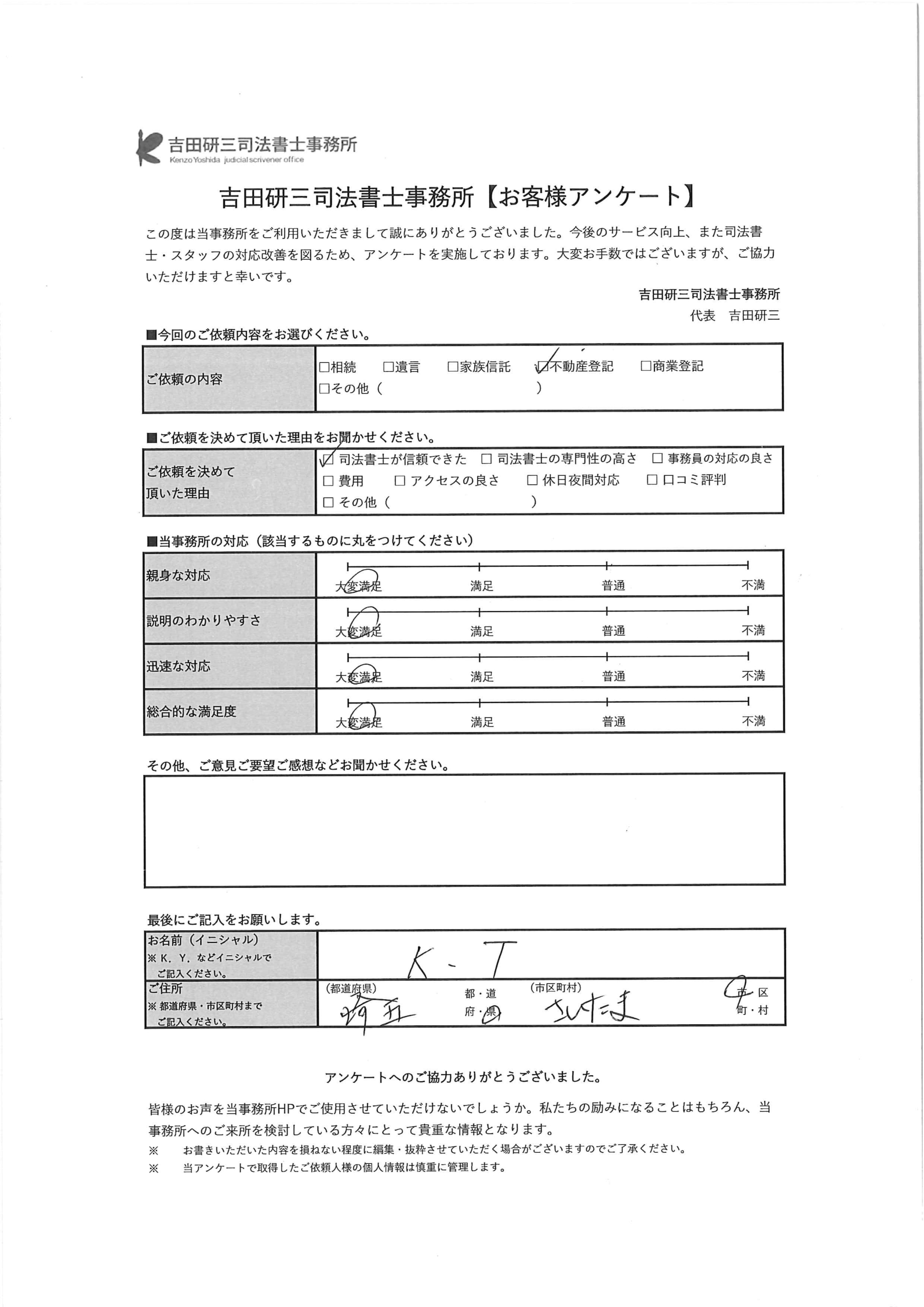 不動産登記 さいたま市 K・T 様