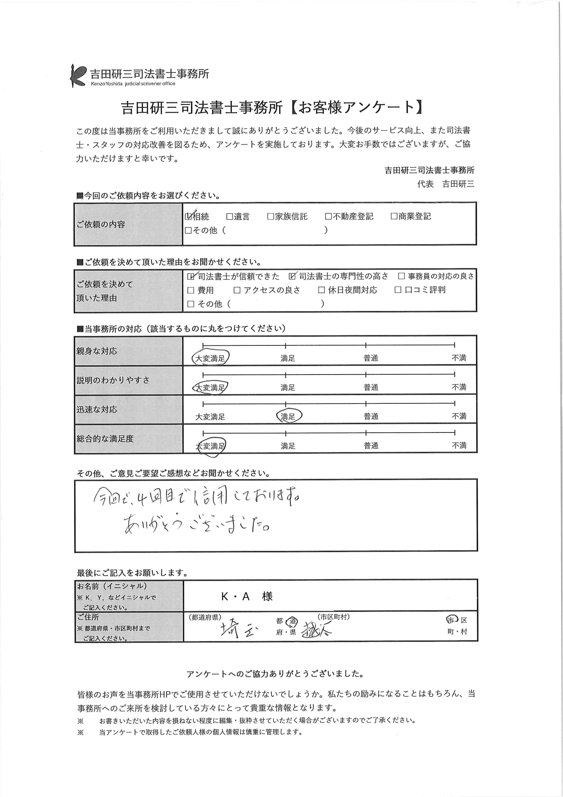 今回で、4回目で信用しております。(相続 越谷市 K・A 様)