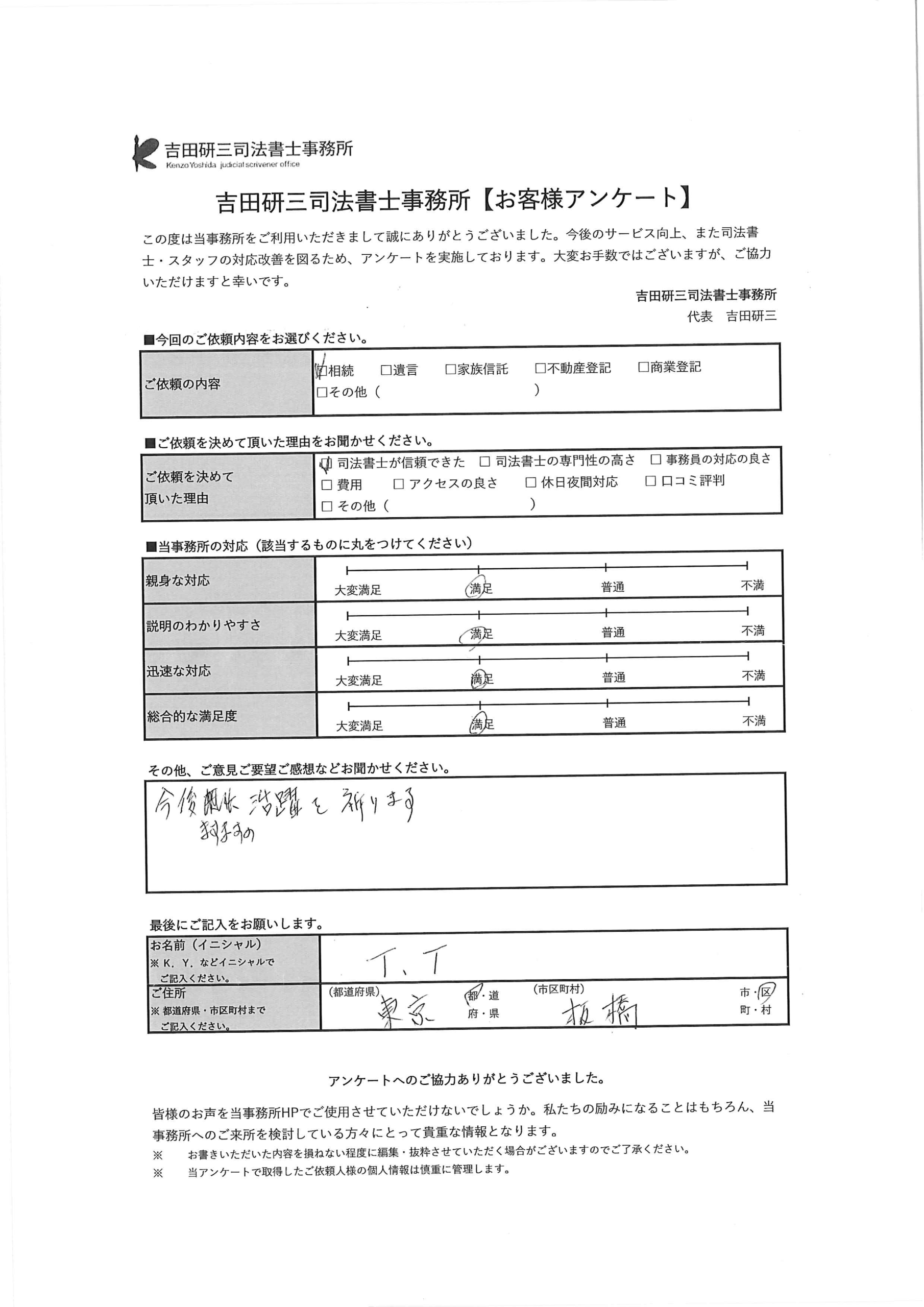 今後ますますの活躍を祈ります(相続 板橋区 T・T様)